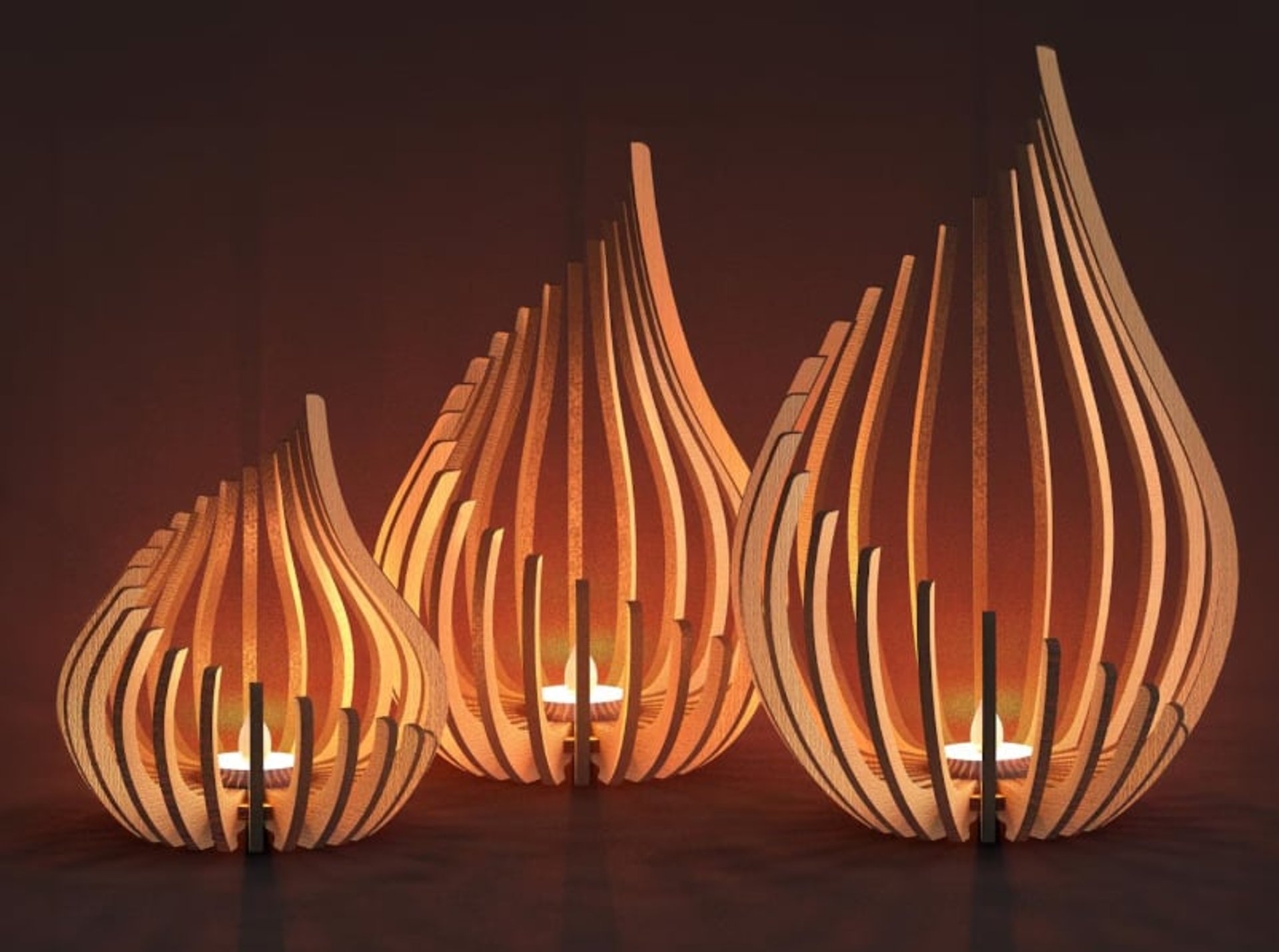 Teelichthalter aus Naturholz – Bogen Design