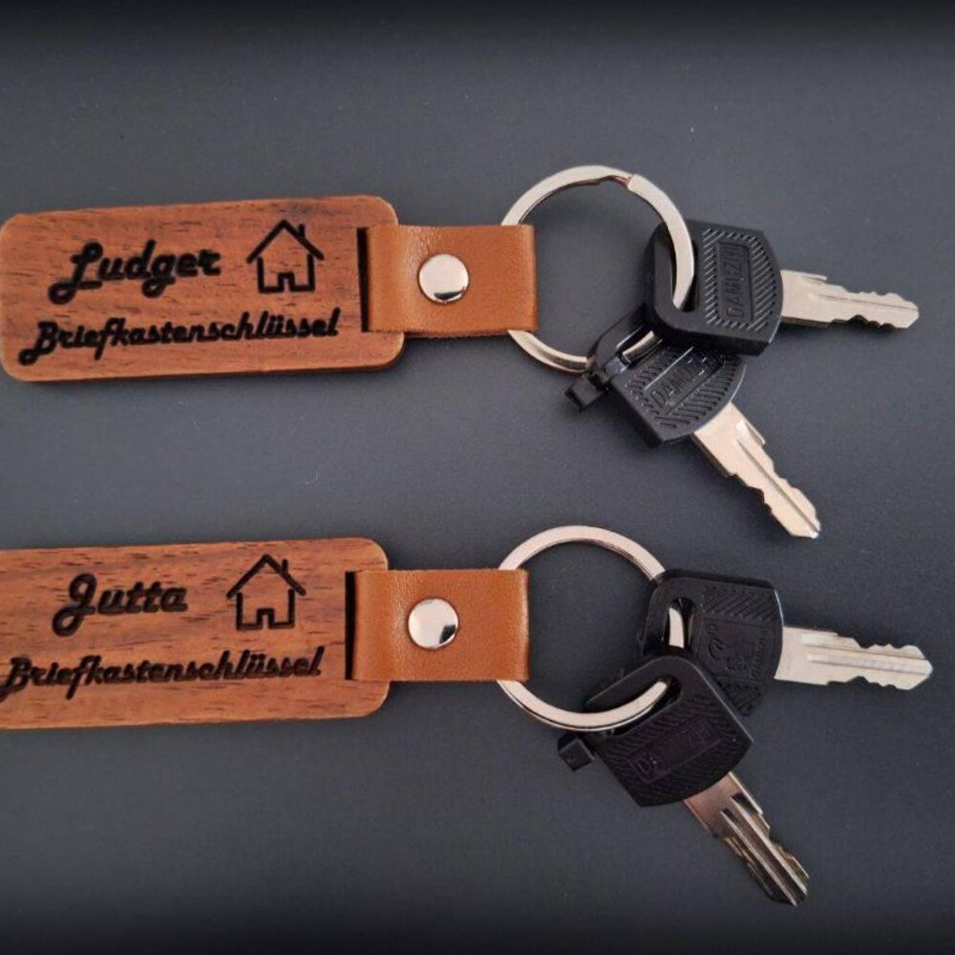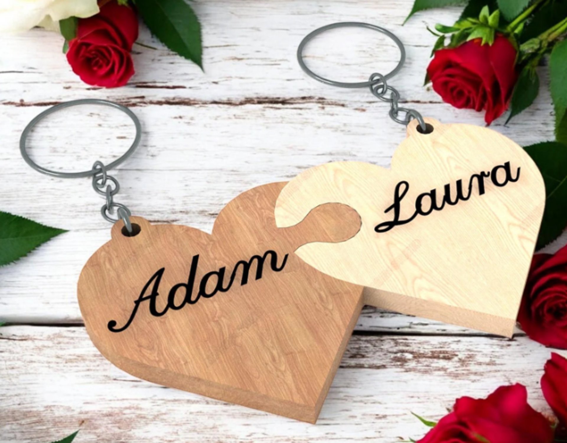 Kurze Beschreibung: Zwei Herz-Schlüsselanhänger mit Gravur „Love“