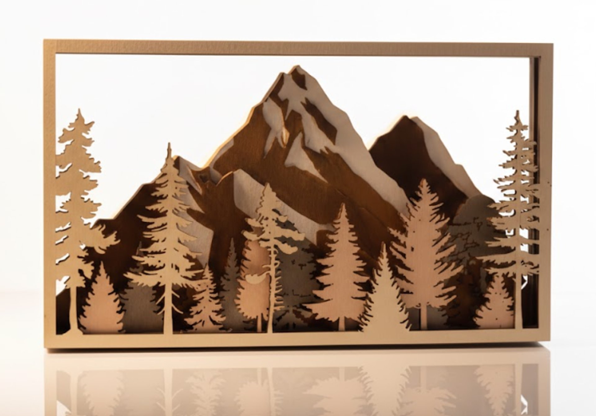 3D-Holzwandbild „Berglandschaft“ – handgefertigt aus Holz